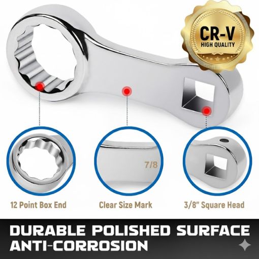 ✅ 12-Point Box End Design: The 12-point configuration allows fine indexing, making it easier to align adapters on tight or awkward fasteners that are difficult to reach. This design reduces work time, prevents rounding of bolt heads, and improves access in recessed or confined spaces. It is compatible with standard 3/8" torque wrenches and works well with SAE fasteners across automotive, machinery, and general mechanical applications.