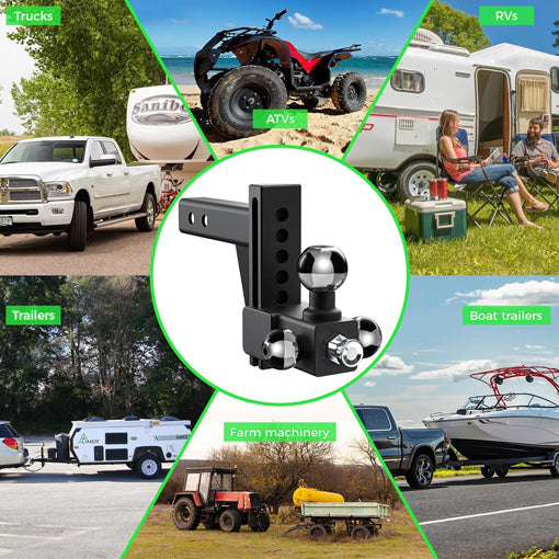 A: What makes the Adjustable Drop Hitch with Tri-Ball superior to other brands is its combination of precision engineering, all-stainless-steel tri-ball design, and tool-free adjustability. Unlike standard hitches that require wrenches or rust after a few uses, it features a spring-loaded pull-pin system for instant height changes, dual-layer anti-corrosion protection, and a tested 18,500 lbs load capacity. This ensures unmatched strength, durability, and convenience making it a smarter, longer-lasting solution for any towing setup.