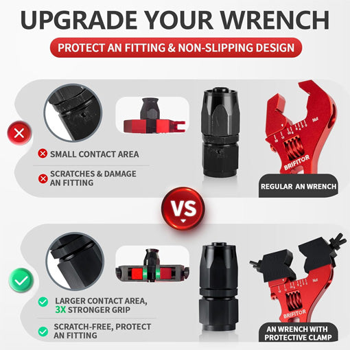 ✅Secure Grip with Scratch Protection: Many mechanics and DIY enthusiasts risk damaging delicate AN fitting when using standard wrenches. Our AN fitting wrench features protective clamps that prevent scratches while maintaining a strong, secure grip, giving you professional-quality results every time.