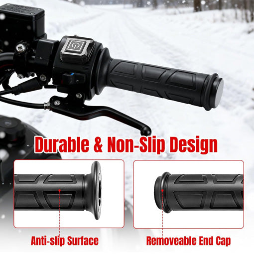 A: The grips feature anti-skid treatment, frost resistance, and a 7.5A built-in safety fuse that automatically disconnects power if an issue occurs.