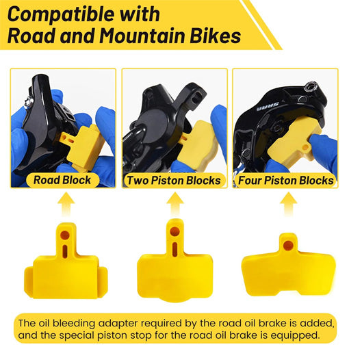 ✅Wide Compatibilitys: The kit includes 12–13 adapters compatible with a broad range of hydraulic brakes from 2000 to 2021, suitable for both mountain bikes and road bikes. It accommodates multiple lever types and caliper designs, providing flexible use for one or several bikes.