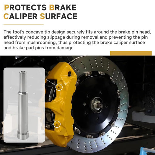 ✅Safe & Precise Pin Removal: Many mechanics struggle with pins that slip during removal, risking scratched calipers or damaged paint. The convex tip of this tool aligns perfectly with both round and pointed pins, allowing controlled, slip-free removal while protecting calipers from scratches.
