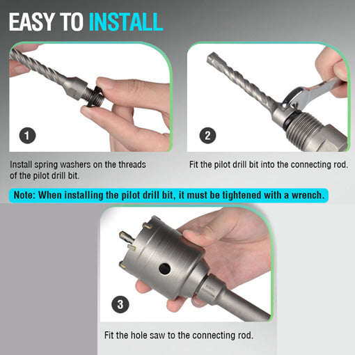 ✅Stable And Secure Cutting: Ordinary bits slip and wobble, leading to crooked holes. This set reduces swing range and keeps the drill steady, ensuring straighter and more accurate cuts. The cross-shaped alloy teeth provide strength and stability, cutting smoothly through tough concrete and brick.