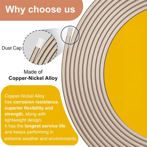 ✅ Reliable Performance: These copper-nickel lines maintain structural integrity under extreme temperatures, resist cracking, and deliver consistent brake performance in hot, cold, and humid conditions. Corrosion-resistant and compliant with global automotive safety standards, these lines provide dependable, long-lasting operation for any braking system.