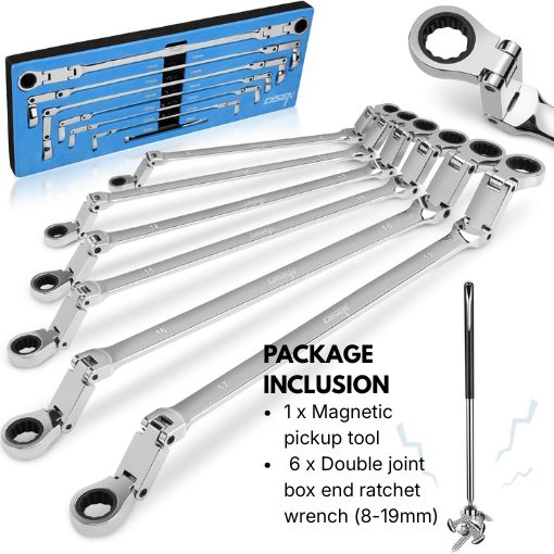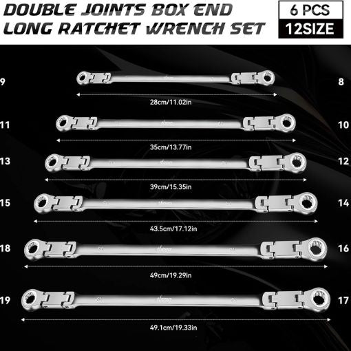 6 x Double joint box end ratchet wrench (8-19mm)