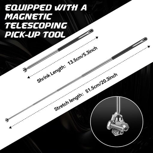 ✅ Magnetic Bolt Retriever Included: Losing bolts in tight spaces is frustrating and slows down work. The included retractable magnetic pickup tool allows you to quickly retrieve dropped bolts without awkward bending or searching.