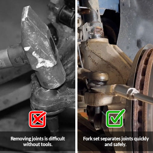 ✅ Fast & Effortless Component Removal: Struggling with worn-out ball joints, pitman arms, or track bars can cost time and effort. The Heavy Duty Thick Pickle Fork Set reduces labor with its 20% thicker forks and interchangeable handles, making removal quick and stress-free.