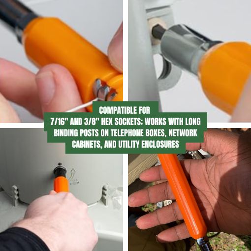 Compatibility: 7/16" and 3/8" hex sockets; works with long binding posts on telephone boxes, network cabinets, and utility enclosures