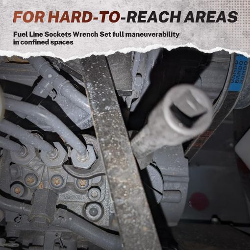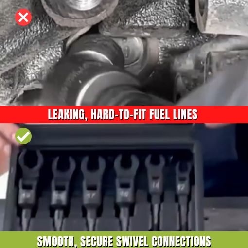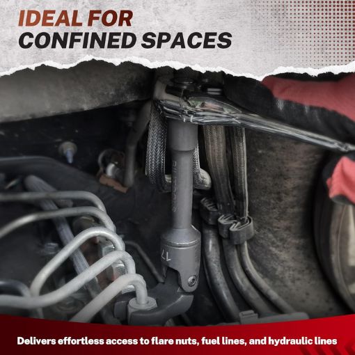 ✅Full Reach in Tight Spaces: Mechanics and DIYers often struggle with flare nuts on fuel and hydraulic lines tucked into confined areas. This set’s 180° flex-head design provides full maneuverability, allowing precise access where standard wrenches cannot reach. Ideal for automotive repairs, hydraulic maintenance, and other applications requiring hard-to-reach fasteners.