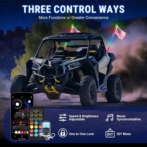 ✅ Instant Visibility with 360° Customizable Lighting: Off-road riding can be dangerous in low-light conditions, leaving riders unseen and at risk. UTV Quick Release LED Whip Light Kit provide complete 360° illumination with over 300 colors, multiple modes, and adjustable brightness, ensuring safety while enhancing your vehicle’s style.